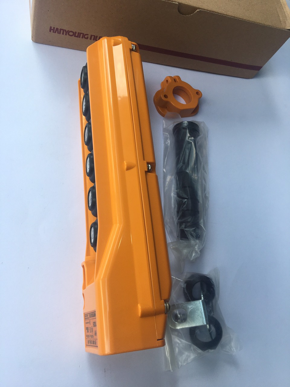 Tay bấm điều khiển cầu trục 6 nút Hàn Quốc Tay bấm bao gồm 6 nút: U/D/E/W/S/N Hãng sản xuất: Hanyoung - Hàn quốc Tay bấm điều khiển 6 nút được sử dụng trong các