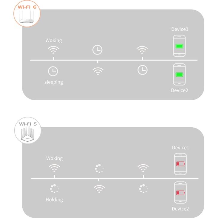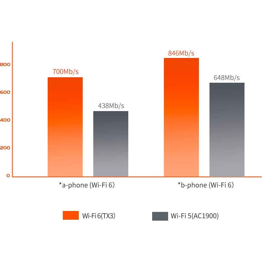 Router 3200Mbps Wi-Fi 6 Dual-band Gigabit Mesh: - Băng thông lớn; CPU lõi kép 4 luồng, hỗ trợ NAT - Truy cập đồng thời 48 người dùng (đề xuất) truy cập Wifi hai dải băng