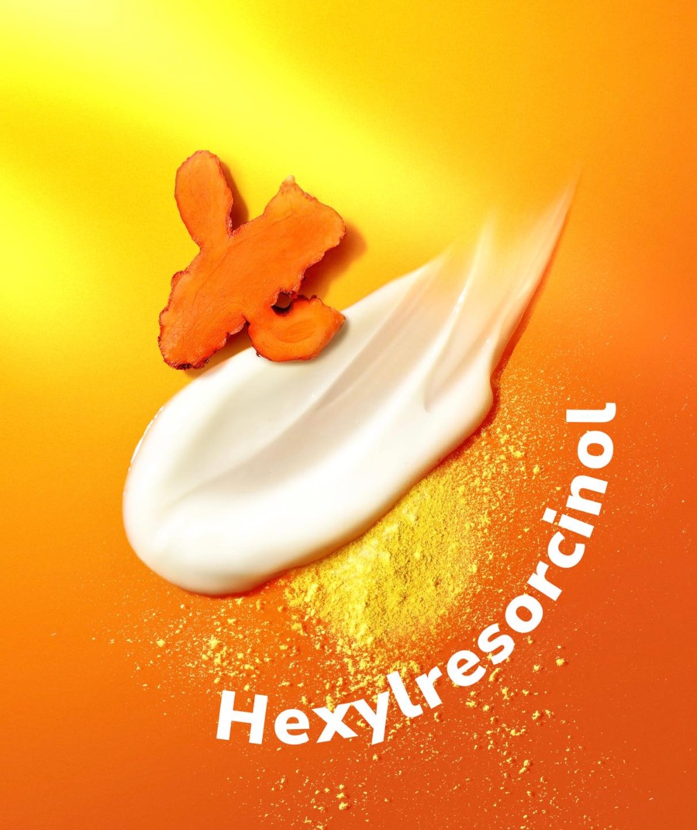 Aqua/Water, Coco-Caprylate/Caprate, Dicaprylyl Carbonate, Butylene Glycol, Sodium Acrylates Copolymer, Niacinamide, Betaine, Glycereth-26, Oleyl Erucate, Hexylresorcinol, Tetrahydrodiferuloylmethane,Tetrahydrodemethoxydiferuloylmethane, Tetrahydrobisdemethoxydiferuloylmethane, Curcuma Longa (Turmeric) Root Extract, Curcuma Longa (Turmeric) Root Oil, Curcuma Longa (Turmeric) Root Powder, Tetrahexyldecyl Ascorbate, Ferulic Acid, Glycerin, Propanediol, Pentylene Glycol, Caprylic/Capric Triglyceride, Daucus Carota Sativa (Carrot) Root Extract, Lecithin, Glycine Soja (Soybean) Oil, Allantoin, Beta-Carotene, Ethylhexylglycerin, Tocopherol, Hydroxyacetophenone, Trisodium Ethylenediamine Disuccinate, Caramel, Phenoxyethanol, Sodium Benzoate, Potassium Sorbate.