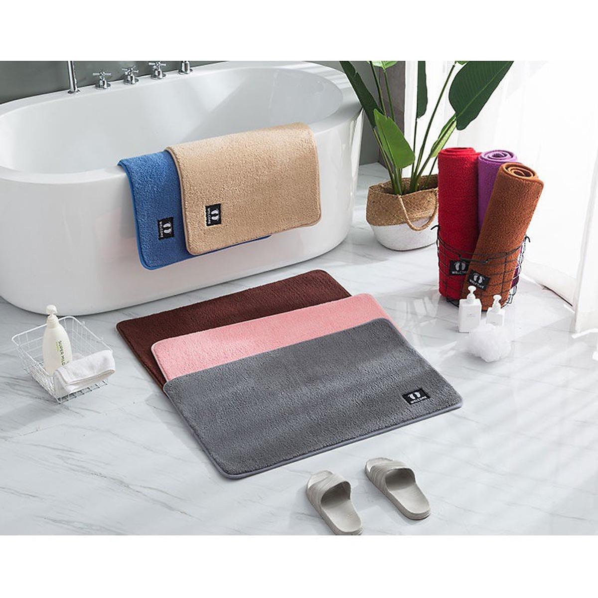 Thảm nhà tắm 40x60 cm siêu thấm, thảm lau chân chống trượt mau khô, thảm chân silicon decor nhà tắm