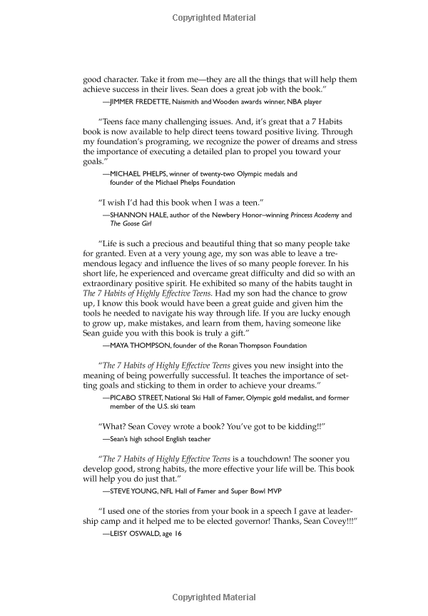 “If The 7 Habits of Highly Effective Teens doesn’t help you, then you must have a perfect life already.”