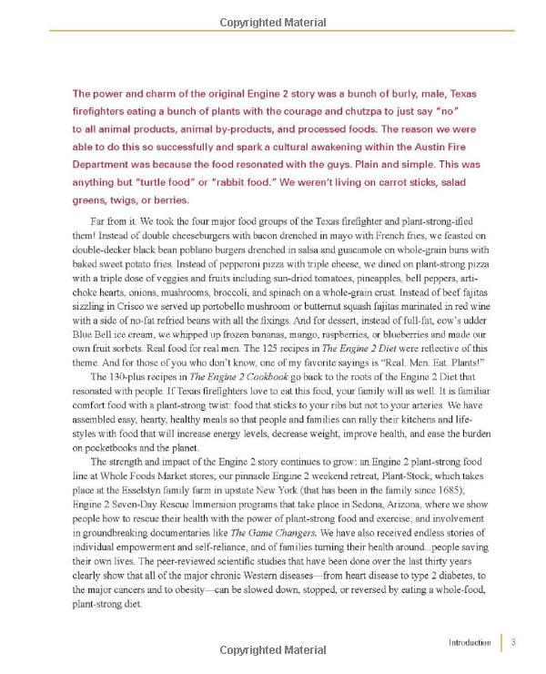 The Engine 2 Diet has sold hundreds of thousands of copies and inspired a plant-based food revolution. Featuring endorsements from top medical experts and a food line in Whole Foods Market, Engine 2 is the most trusted name in plant-based eating. Now, readers can bring the Engine 2 program into their kitchens with this cookbook companion to the original diet program. Engine 2 started in a firehouse in Texas, and if Texas firefighters love to eat this food, readers nationwide will eat it up, too! The Engine 2 Cookbook packs the life-saving promise of the Engine 2 program into more than 130 mouth-watering, crowd-pleasing recipes, including: