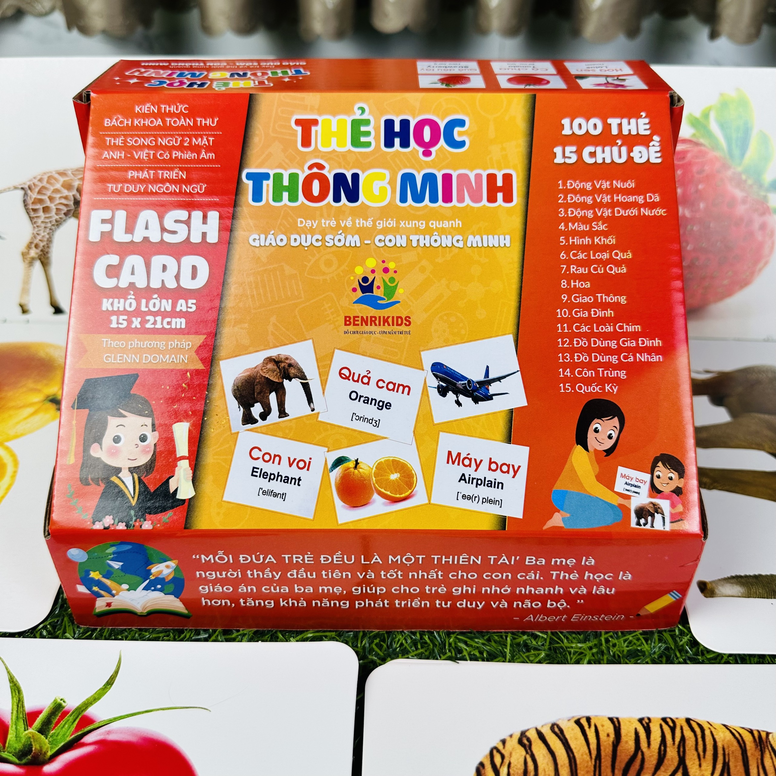 Bộ Thẻ Học Thông Minh 100 Thẻ, 10 Chủ Đề, thẻ Flashcard song ngữ Anh - Vệt