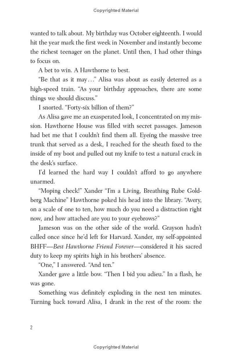 Soon, Avery and the Hawthorne brothers are drawn into a last deadly game against an unknown and powerful opponent. Hearts and lives are at stake - and there is nothing more Hawthorne than winning.