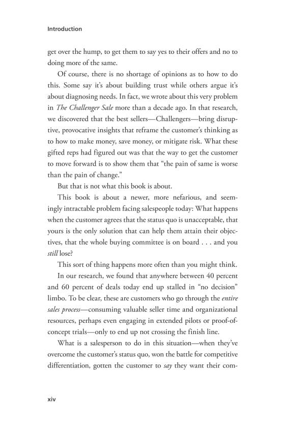 In sales, the worst thing you can hear from a customer isn't 'no.' It's 'I need to think about it.' When this happens, deeply entrenched business advice says to double down on your efforts to sell a buyer on all the ways they might win by choosing you and your business. But this approach backfires dramatically. Why? Because it completely gets wrong the primary driver behind purchasing decision-making: once purchase intent is established, customers no longer care about succeeding. What they really care about is not failing. For years, sales expert Matthew Dixon has been busting longstanding business myths. Now in The JOLT Effect, he and co-author Ted McKenna turn their trademark analysis and latest research to the vital and growing problem of customer indecision - and offer a shocking new approach that turns conventional wisdom on its head. Drawing on a brand-new, first-of-its-kind study of more than two and a half million sales conversations from across industry, they reveal the surprising truth that high-performing sales reps grasp and their average-performing peers don't: only by sing the customer s fear of failure can you get indecisive buyers to go from verbally committing to actually pulling the trigger. Packed with robust data, counterintuitive insights, and practical guidance, The JOLT Effect is the playbook for any salesperson or sales leader who wants to close the gap between customer intent and action - and close more sales.