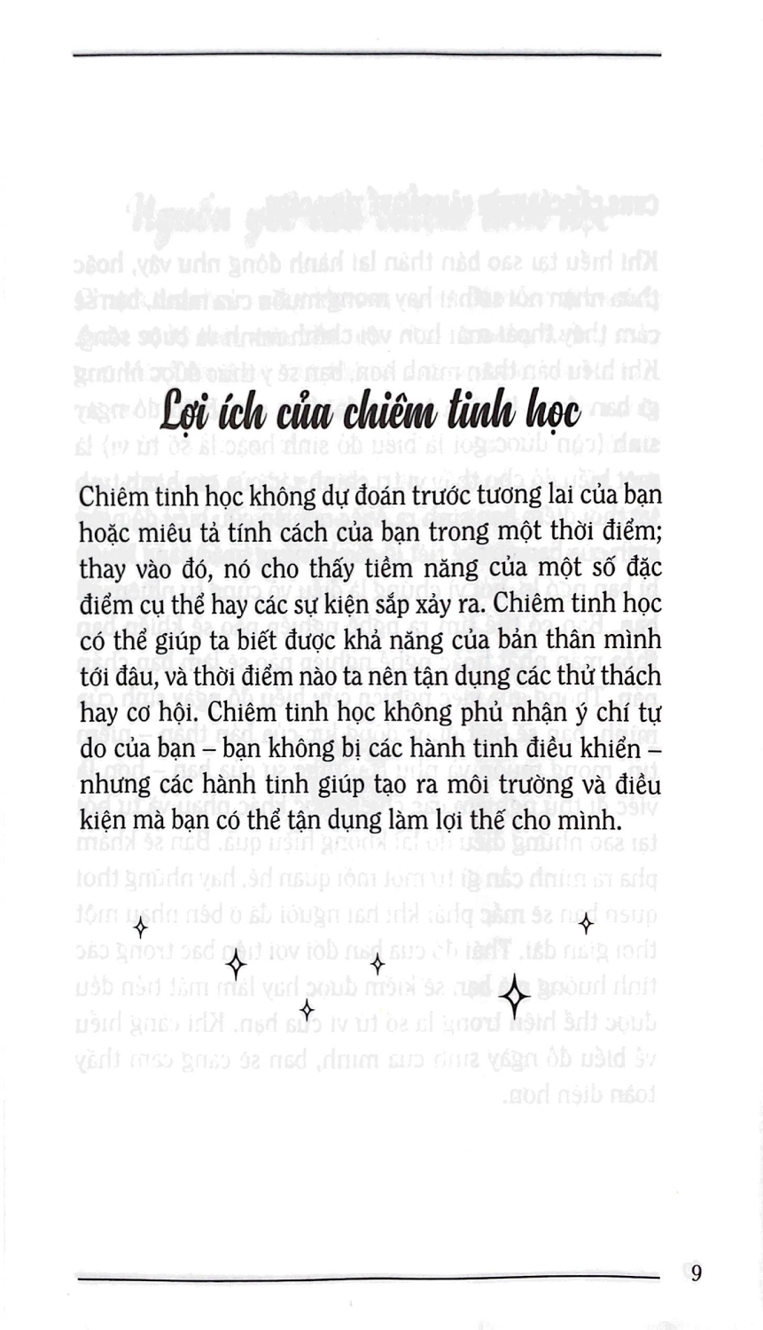 Với nhiều kiến thức hữu ích về chiêm tinh cùng cách trình bày súc tích, cuốn sách này sẽ dẫn dắt bạn khám phá ảnh hưởng của cung hoàng đạo và các hành tinh trong việc hình thành nên tính cách của bạn. Hãy để sách soi sáng quá khứ, hiện tại và tương lai của bạn, đồng thời cho bạn cái nhìn sâu sắc hơn về bản thân và những người xung quanh.