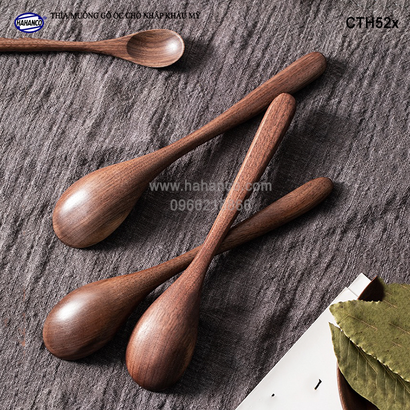 Thìa/Muỗng bằng gỗ óc Chó (Walnut) Nhập khẩu Mỹ, không có chất độc tiết ra khi gặp nhiệt độ cao.
