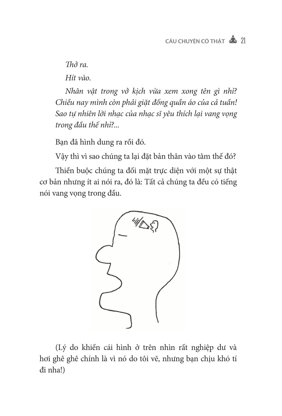 Càng ít bị giọng nói trong đầu quyến dụ, bạn càng có nhiều không gian hơn cho những ý nghĩ và cảm giác mới mẻ. Tôi không còn là nô lệ cho những tham vọng và thái độ thù ghét, điều này đã cho tôi một nhãn quan rộng mở hơn và, đôi khi, được tận hưởng một cảm giác buông xả sâu sắc khó tả.