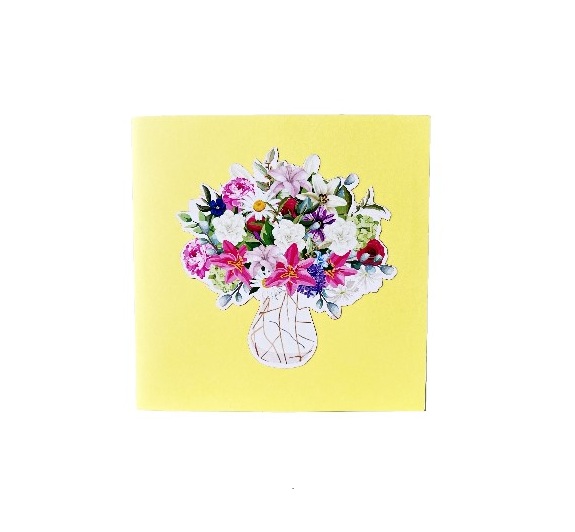 Mang đến sự tươi mới và bất ngờ với thiệp 3D Pop Up bình hoa nhiều màu sắc. Khi mở ra, hình ảnh bình hoa rực rỡ gồm nhiều loài hoa bung nở bật nổi