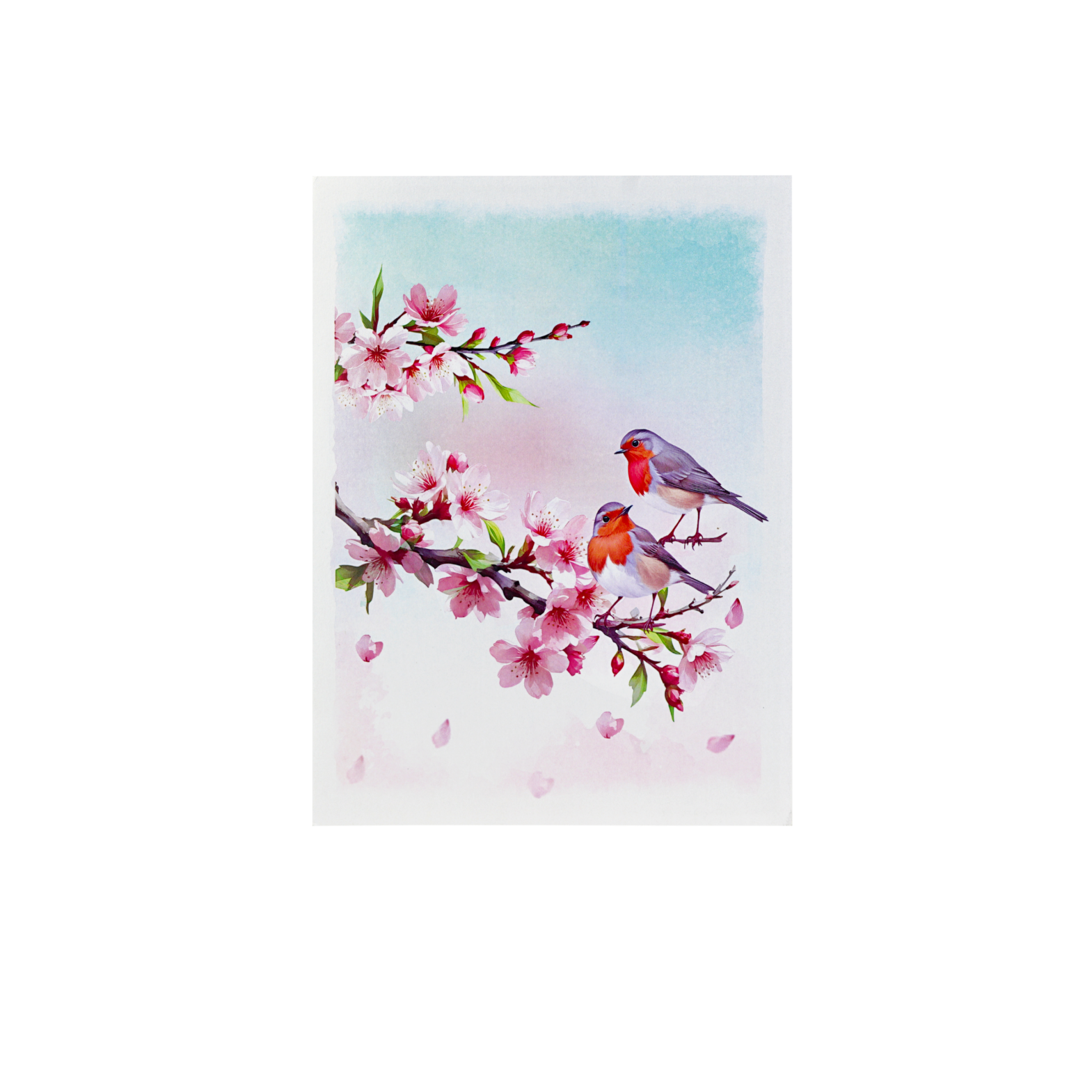 Thổi bùng cảm xúc lãng mạn với thiệp 3D Pop Up hoa anh đào & chim. Khi mở ra, những cành hoa anh đào hồng rực rỡ bật nổi cùng đôi chim nhỏ ríu rít, mang đến cảm giác bình yên và thơ mộng như khung cảnh mùa xuân Nhật Bản.