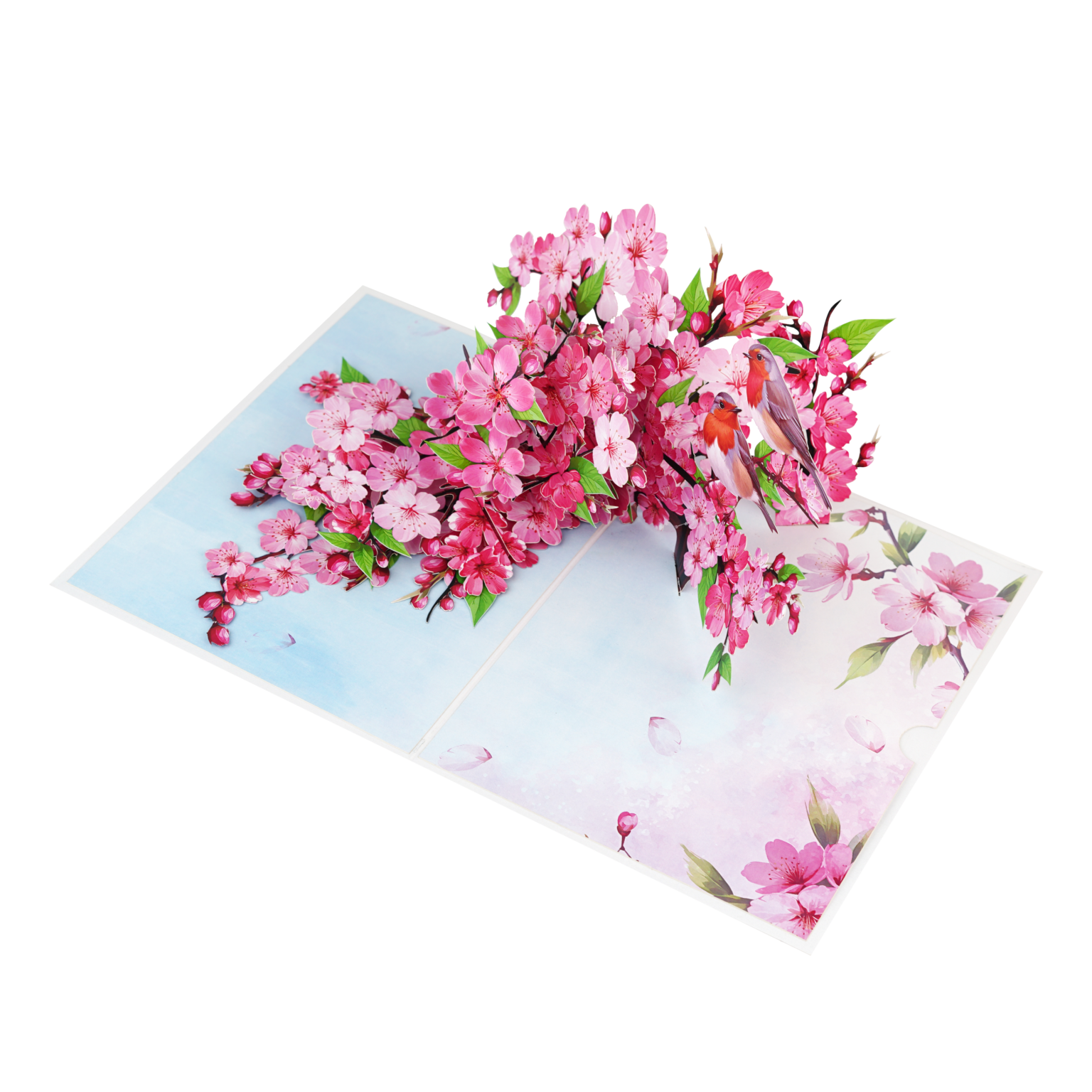 Thổi bùng cảm xúc lãng mạn với thiệp 3D Pop Up hoa anh đào & chim. Khi mở ra, những cành hoa anh đào hồng rực rỡ bật nổi cùng đôi chim nhỏ ríu rít,