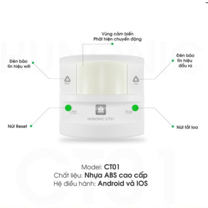 - Bảo Vệ An Toàn: Khi phát hiện kẻ xâm nhập, Hunonic CT01 kích hoạt ngay âm thanh báo động cực lớn 115dB, ngăn chặn trộm và bảo vệ tài sản của bạn.