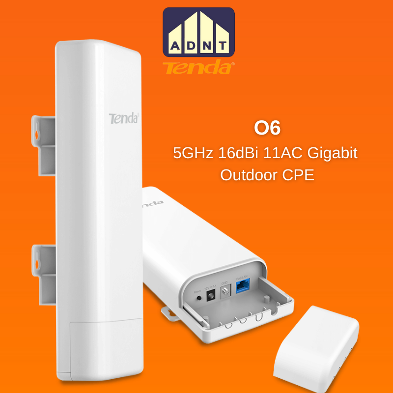 CPE Ngoài Trời 16 dBi Tần Số 5 GHz Tenda O6 Thiết kế ngoài trời chuyên nghiệp CPE Ngoài Trời 16 dBi Tần Số 5 GHz Tenda O6 được thiết kế để có thể hoạt