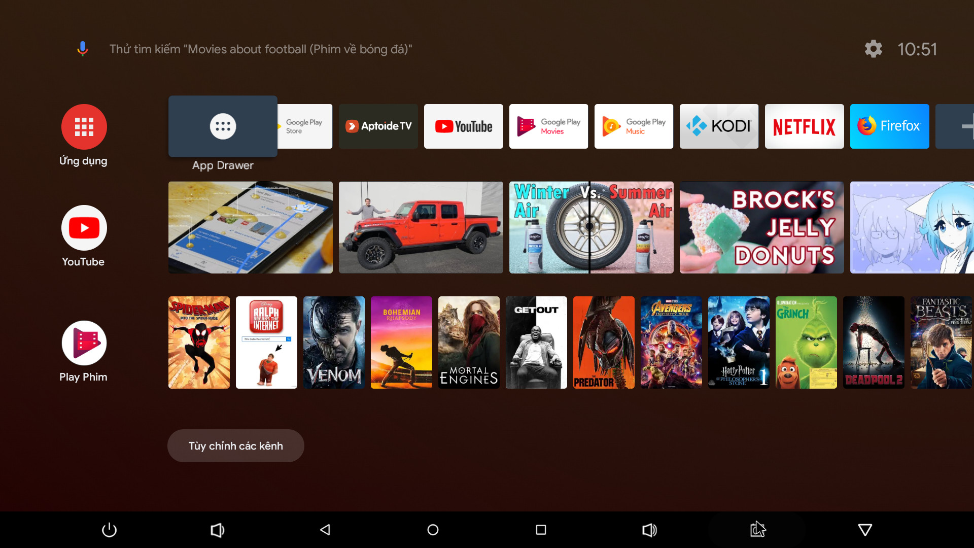 Cài sẵn ứng dụng xem phim, tivi truyền hình cáp miễn phí vĩnh viễn