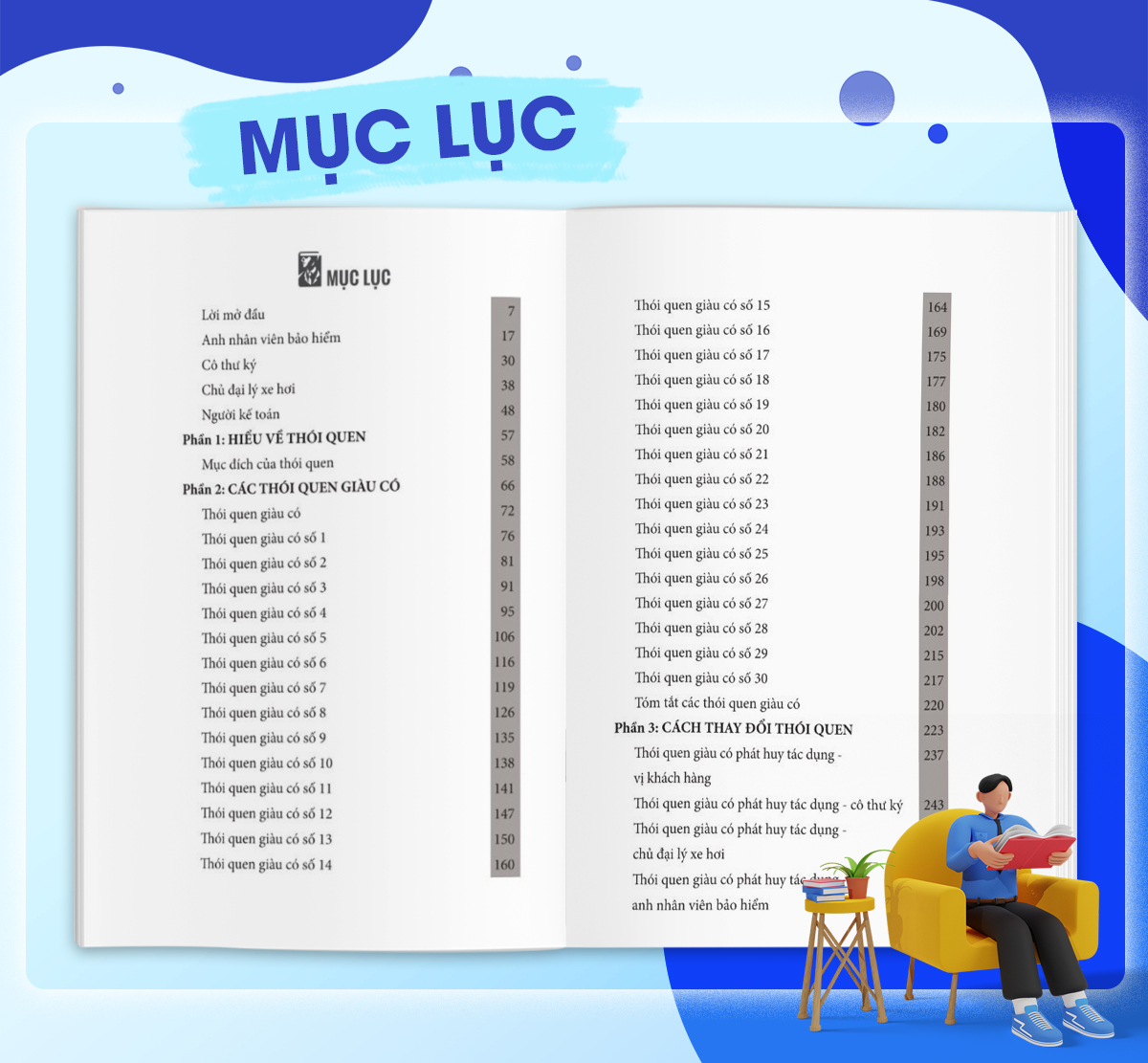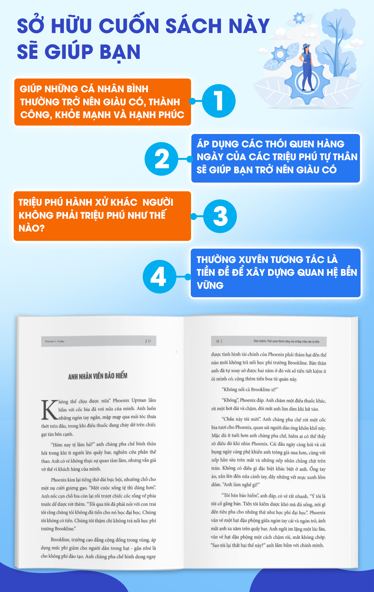 - Nằm trong top 50 sách Doanh nhân hay nhất mọi thời đại. Bạn là sản phẩm từ những thói quen của chính bạn, muốn thành công hãy tạo những thói quen tốt như những người thành công. Cuốn sách này sẽ tiết lộ: Triệu phú hành xử khác người thường thế nào? 90% triệu phú đều thực hiện các thói quen nào hàng ngày? Cách kiếm tiền của các triệu phú tự thân có giống nhau?