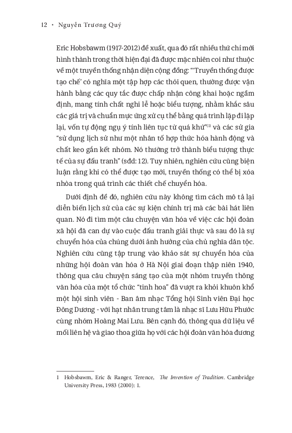 Nghiên cứu cũng khảo sát cuộc chuyển hóa của các tổ chức vốn dĩ gập ghềnh trước những vấn đề phân ly ý thức hệ xảy ra. Hà Nội là bối cảnh địa lý chính cho những hoạt động này diễn ra, và cũng mau chóng trở thành một chiến địa văn hóa khắc nghiệt trong suốt thập niên 1940 và cho đến tận những năm 1950 khi hòa bình lập lại ở miền Bắc. Cuối cùng, khi tập trung tìm hiểu các sản phẩm của Ban âm nhạc Tổng hội sinh viên Đông Dương với người đại diện là Lưu Hữu Phước, cũng như Văn Cao và nhóm Đồng Vọng cùng các hội đoàn văn hóa giáo dục trong thời điểm diễn ra tiến trình giành độc lập của một nước Việt Nam, nghiên cứu hướng đến việc làm sáng tỏ vai trò chính trị của hoạt động văn hóa giáo dục bên cạnh các cuộc đấu tranh vũ trang đã chi phối lịch sử mà số phận đất nước đã nếm trải.