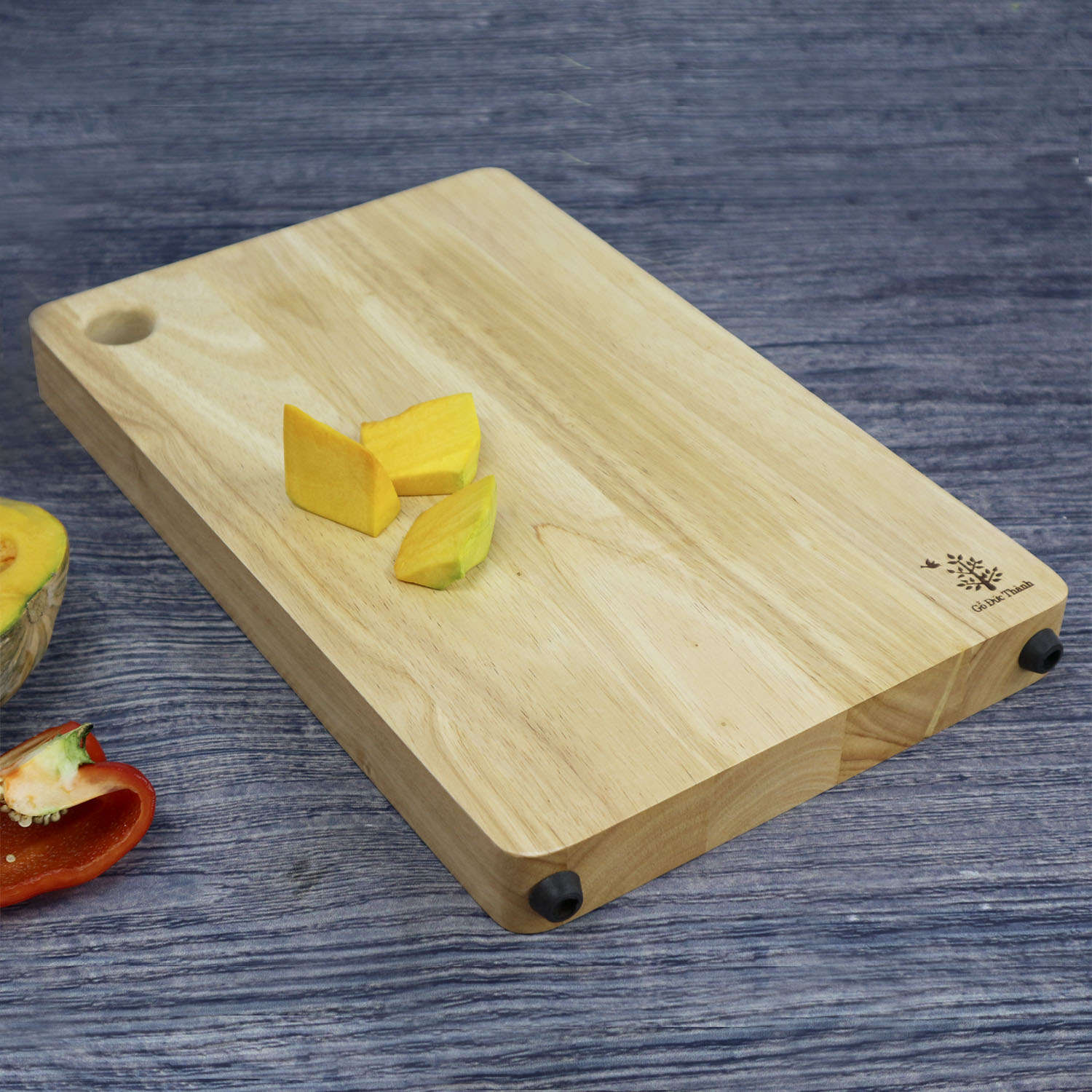 Thớt gỗ chữ nhật có lỗ treo - Size nhỏ 31 x 21 x 3.3 - Gỗ Đức Thành - 06471 - Đạt chứng nhận vệ sinh an toàn thực phẩm