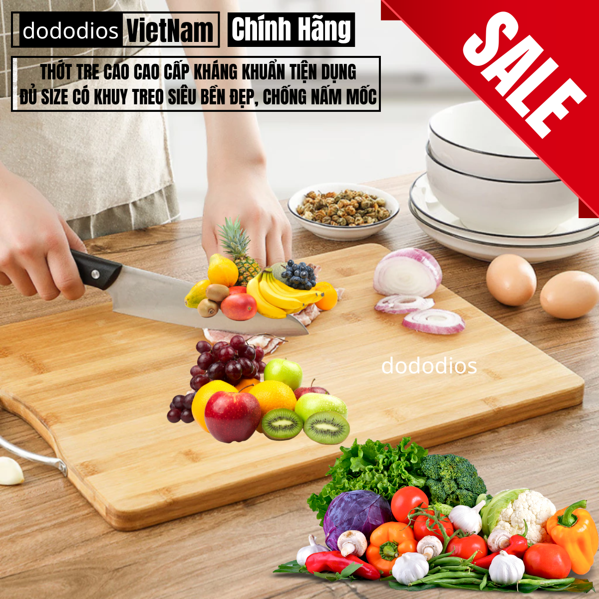Chính hãng dododios Thớt Tre Kháng Khuẩn Cao Cấp - Có Khuy Treo Chống Nấm Mốc Bền Đẹp Kháng Khuẩn