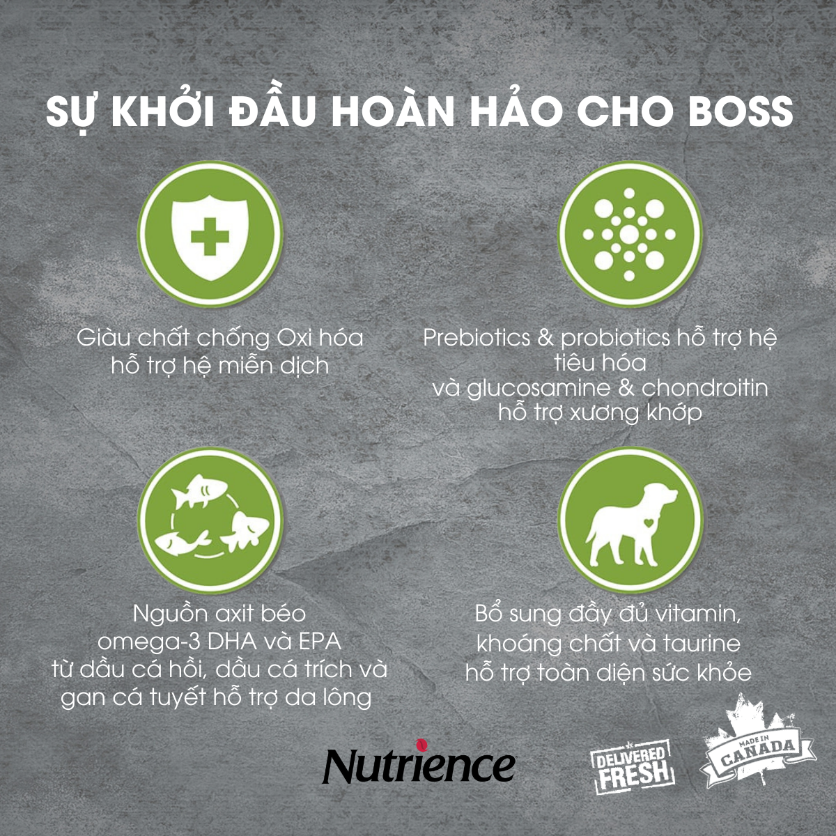 - Thức Ăn Cho Chó Con Khỏe Mạnh Nutrience Original - Thịt Gà, Rau Củ Và Trái Cây Tự Nhiên chất lượng cao là nguyên liệu chủ yếu trong công thức sản phẩm Nutrience Original