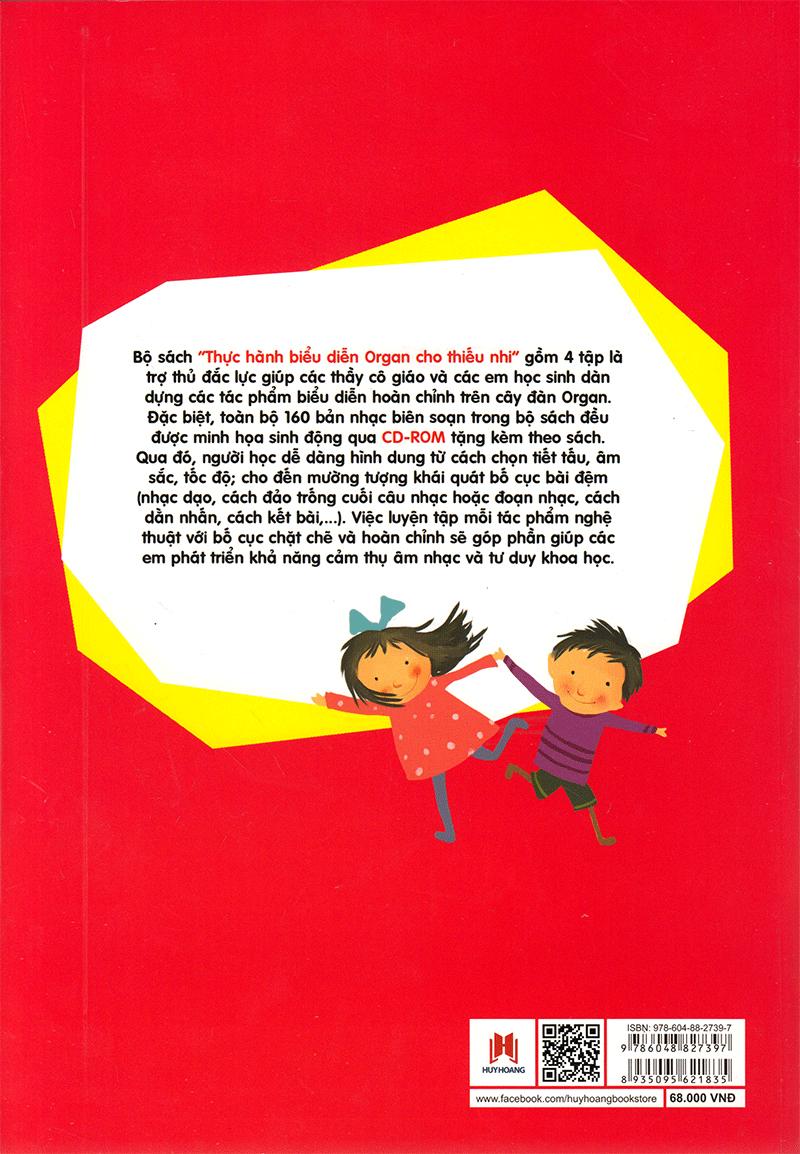 Bộ sách Thực hành biểu diễn organ cho thiếu nhi gồm 4 tập là trợ thủ đắc lực giúp các thầy cô giáo và các em học sinh dàn dựng các tác phẩm biểu diễn hoàn chỉnh trên cây đàn Organ. Đặc biệt, toàn bộ 160 bản nhạc biên soạn trong bộ sách đều được minh họa sinh động qua CD-ROM tặng kèm theo sách.