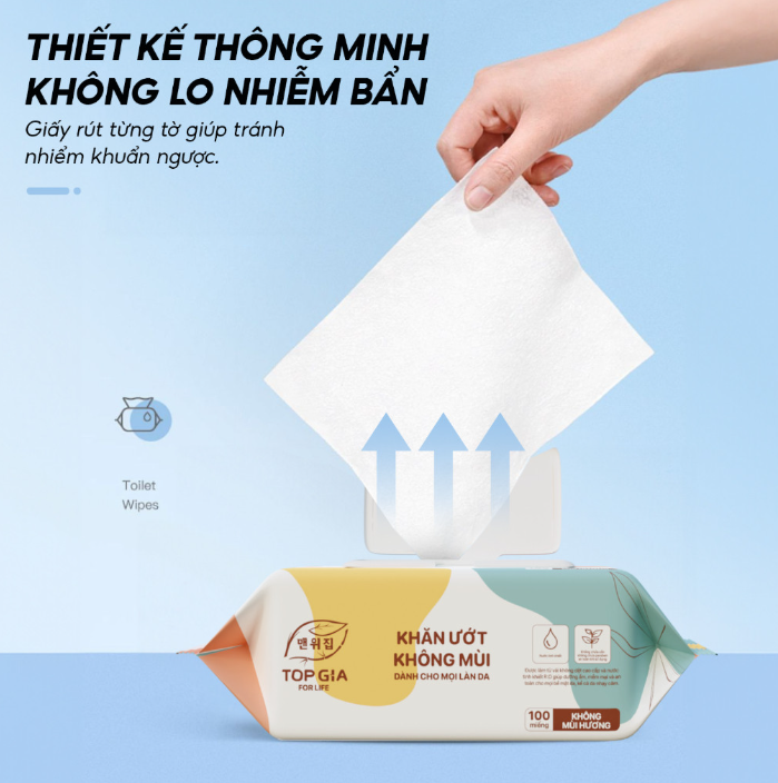 - Khăn giấy ướt Top Gia thiết kế khóa nước kép giúp hạn chế tối đa mất nước, nhiễm bẩn.
