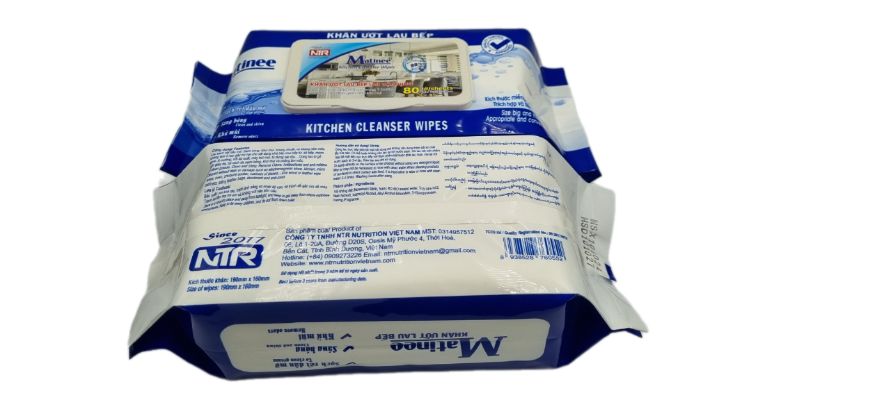 KHĂN ƯỚT LAU BẾP MATINEE Sản phẩm sử dụng hương thực phẩm phù hợp cho vệ sinh các thiết bị vật dụng trong nhà bếp. Công dụng: • Lau sạch vết dầu mỡ •