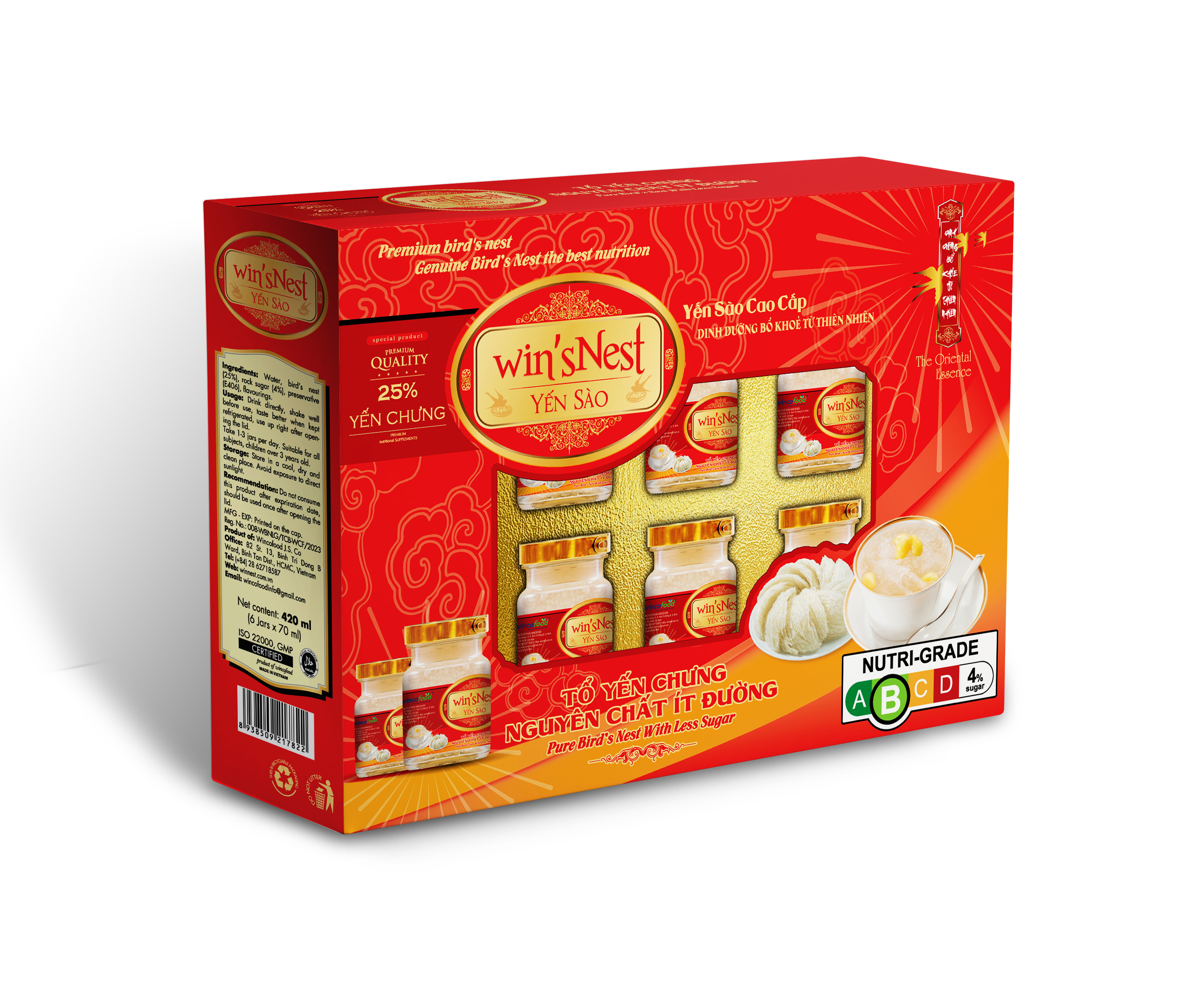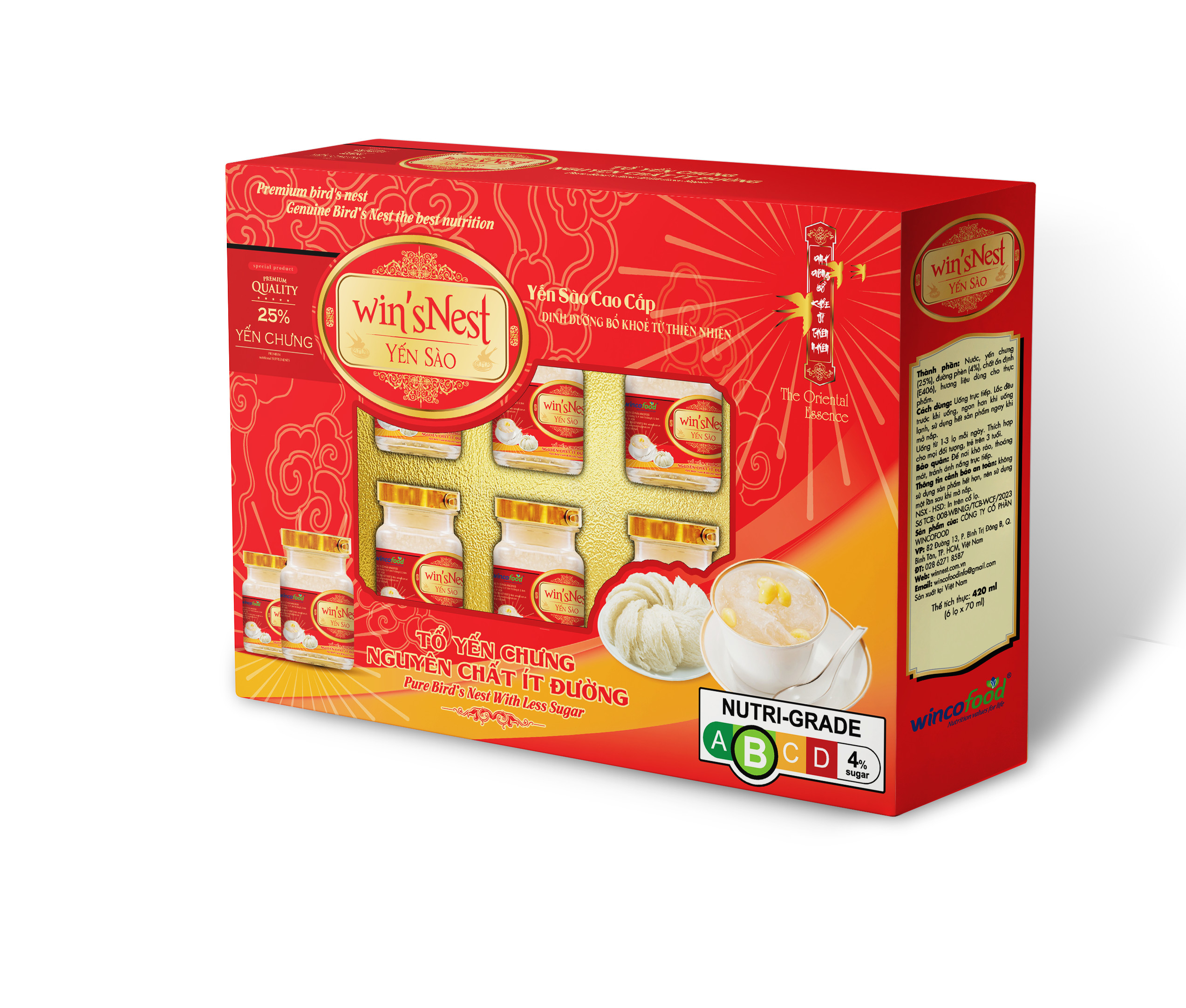 Thành phần: Nước, , Yến sào (25%), đường phèn (4%) , chất ổn định (E406), hương liệu dùng cho thực phẩm.