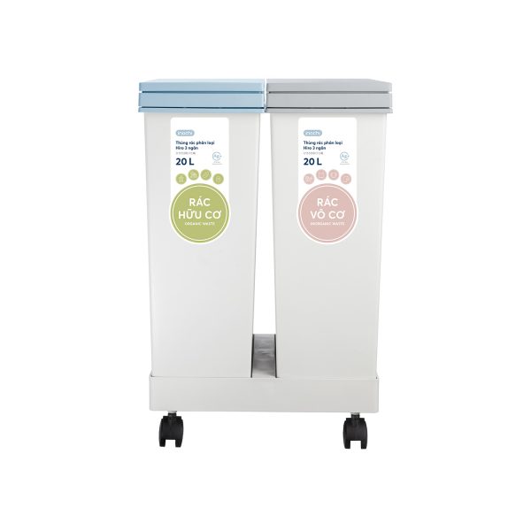 Thùng rác phân loại Inochi Hiro 2 ngăn 40 lít xuất Nhật - Kháng khuẩn, khử mùi - Zalo 0986558655