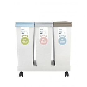 Mua tại TiktokThùng rác phân loại Hiro 3 ngăn Mã SP: .003N Kích thước: 537x336x530 mm Khối lượng: 3620 g Chất liệu: Nhựa PP, PA nguyên sinh, hạt màu, phụ gia kháng khuẩn (Ag+), lò xo Màu sắc: Xanh nhạt + Ghi sữa + Nâu Café HƯỚNG DẪN SỬ DỤNG: Dùng để đựng và phân loại rác trong gia đình, văn phòng, nhà hàng,… ƯU ĐIỂM: Thiết kế hiện đại, dễ dàng tháo lắp và vệ sinh, bánh xe di động giúp di chuyển dễ dàng ===GÓC NHẬT TRONG NHÀ VIỆT===
