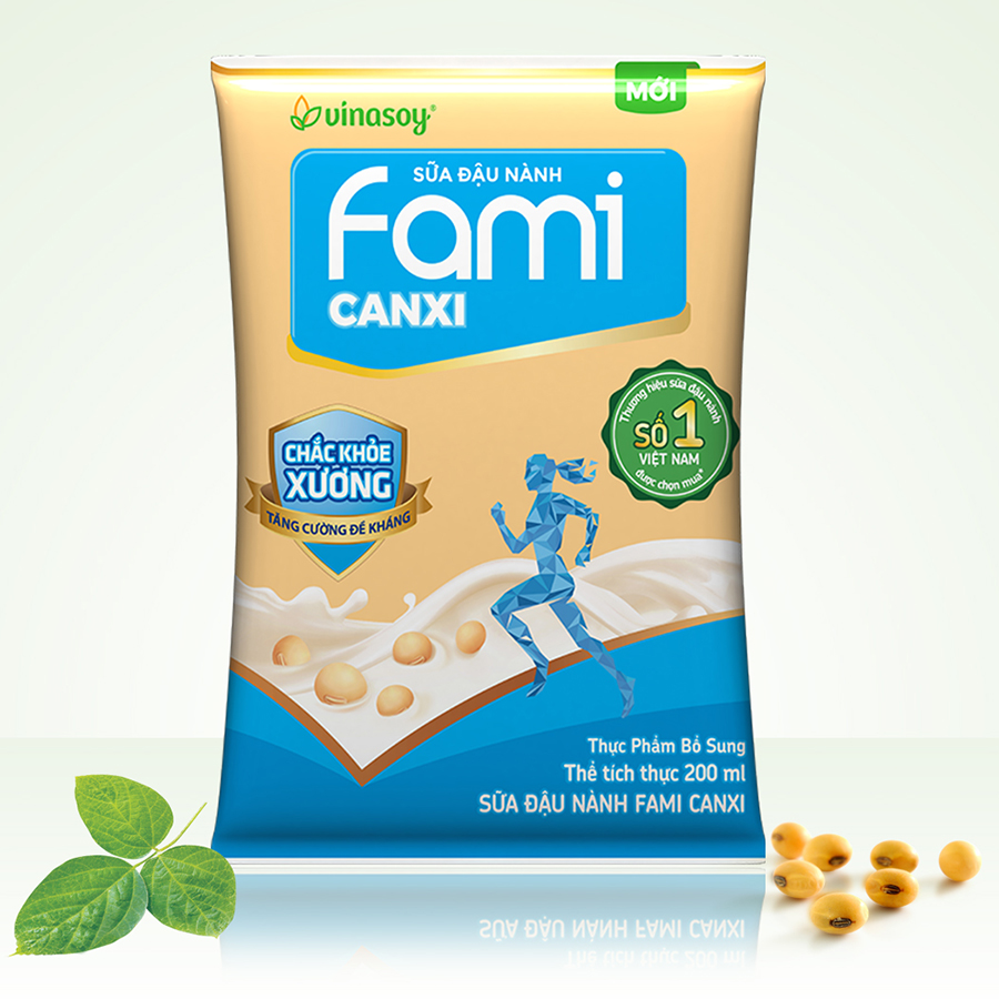- Sữa đậu nành Fami Canxi Plus cùng công thức Bộ 3 Chắc Khỏe bổ sung Nano Canxi, Glucosamin và Protein thực vật hỗ trợ cho bạn có một hệ cơ - xương - khớp