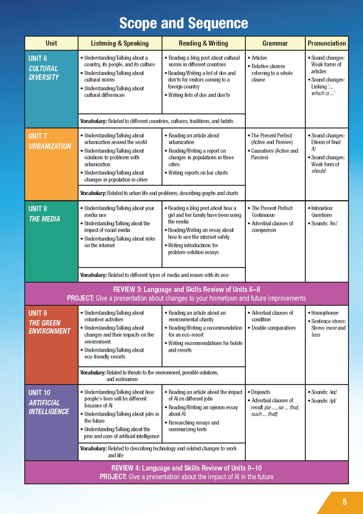 English World Level 5 Pupil's Book + eBook Pack The Pupil's Book contains twelve units with each unit designed to be taught over a two-week period. The key skills of reading, writing, speaking and listening