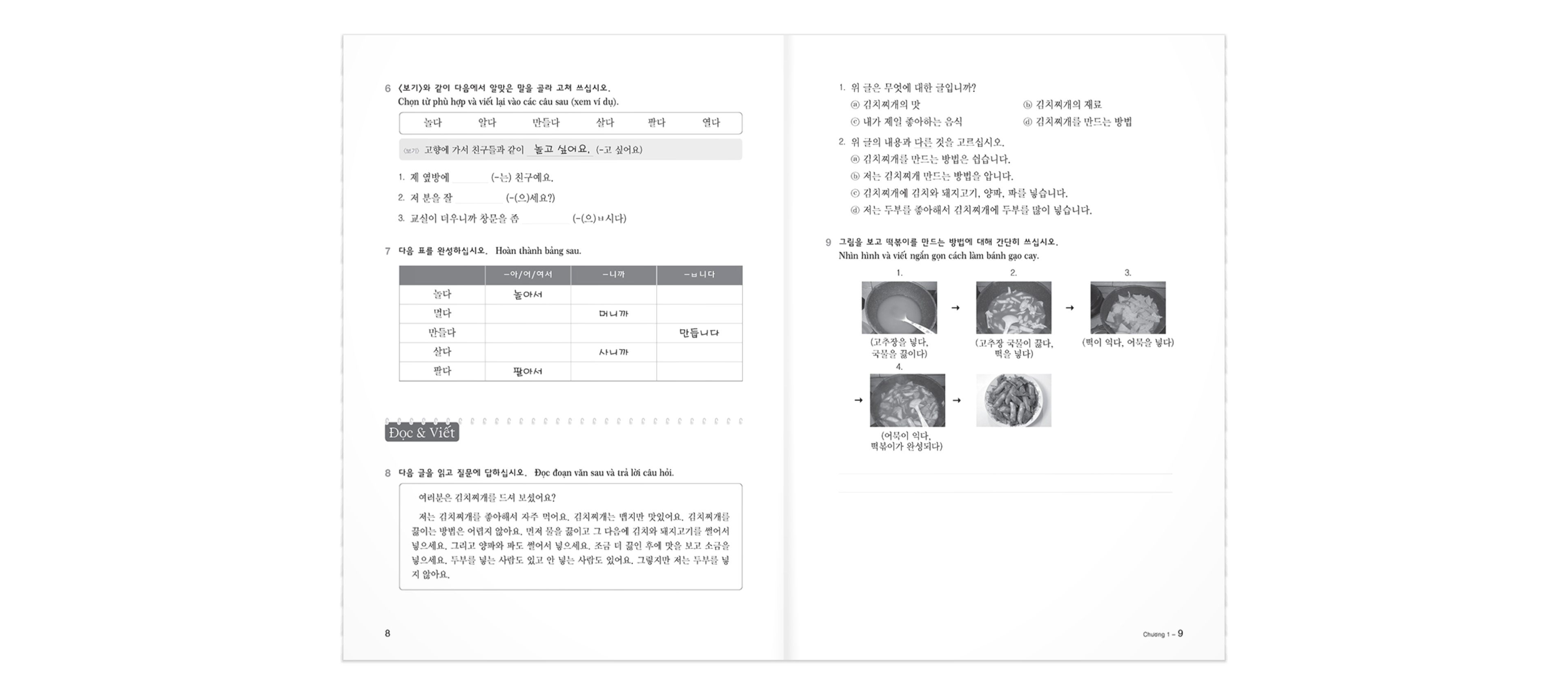 Bộ Giáo Trình Tiếng Hàn Tổng Hợp Dành Cho Người Việt Nam được biên soạn bởi các chuyên gia ngôn ngữ, thiết kế riêng cho người Việt, hiện là giáo trình học tiếng Hàn phổ