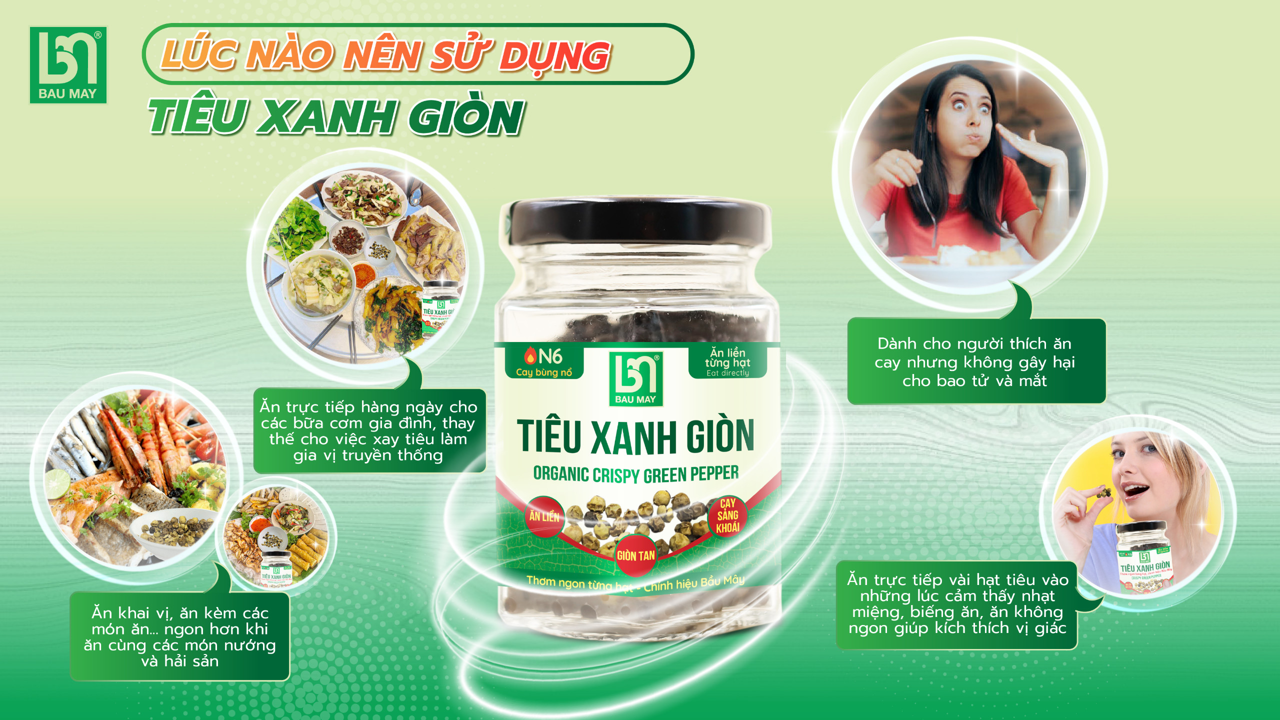 Tiêu là vua của gia vị, trong tiêu có nhiều thành phần như Vitamin, tinh dầu, piperin, chất béo, tinh bột, chanvixin, … đặc biệt piperin hạn chế oxy hóa, bảo vệ gan, hạn chế viêm, hạn chế ung thư, trầm cảm, giảm đau. Việc ăn liền từng hạt tiêu mà không cần giã, không cần rang, không cần xay, khi ăn liền cùng thức ăn giúp ăn ngon hơn, lại tốt việc ăn uống, tiêu hóa tốt, bổ sung sức đề kháng, thải độc tố, kháng khuẩn,…