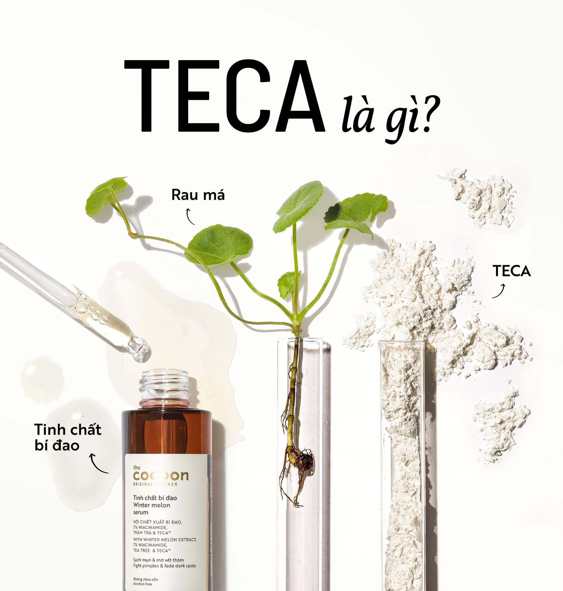Với các thành phần từ thực vật làm chủ đạo gồm bí đao, rau má và tràm trà, bổ sung thêm 7% niacinamide (vitamin B3) - tinh chất bí đao cocoon sẽ phục hồi mạnh mẽ tình