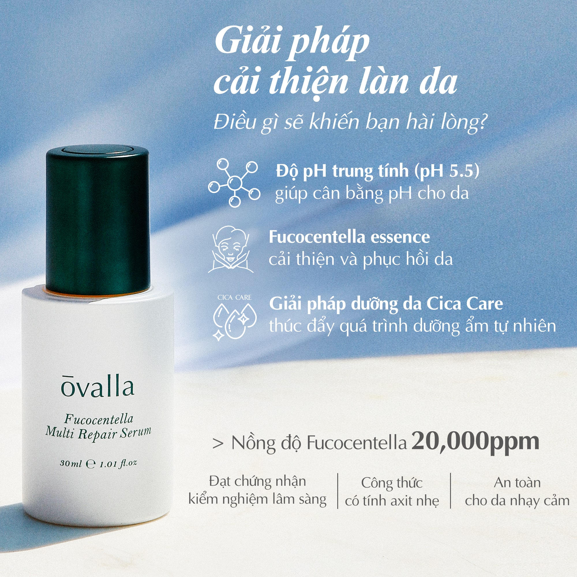 Tinh Chất Dưỡng Phục Hồi OVALLA Repair Serum Giúp Dưỡng Ẩm Phục Hồi Da, Giảm Nếp Nhăn Và Làm Sáng Da (Chai 30ml) - Tinh chất dưỡng phục hồi Ovalla Fucocentella Multi Repair Serum là