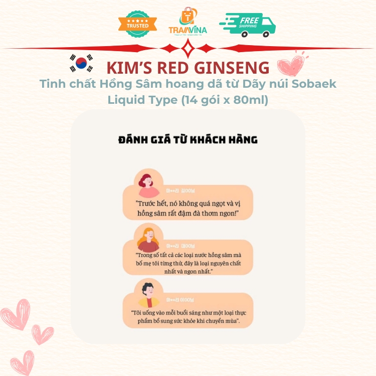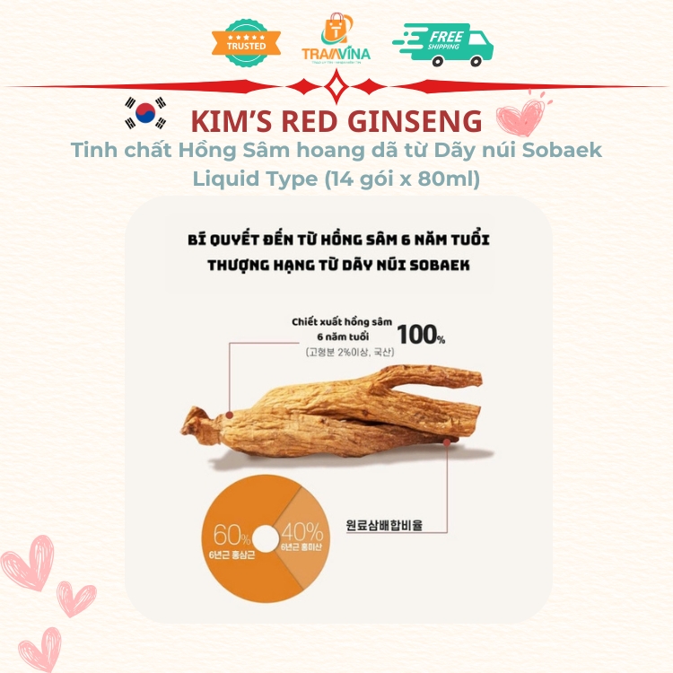 Mua tại TiktokTinh chất Hồng Sâm hoang dã từ Dãy núi Sobaek Kim's Red Ginseng Liquid Type (14 gói x 80ml)