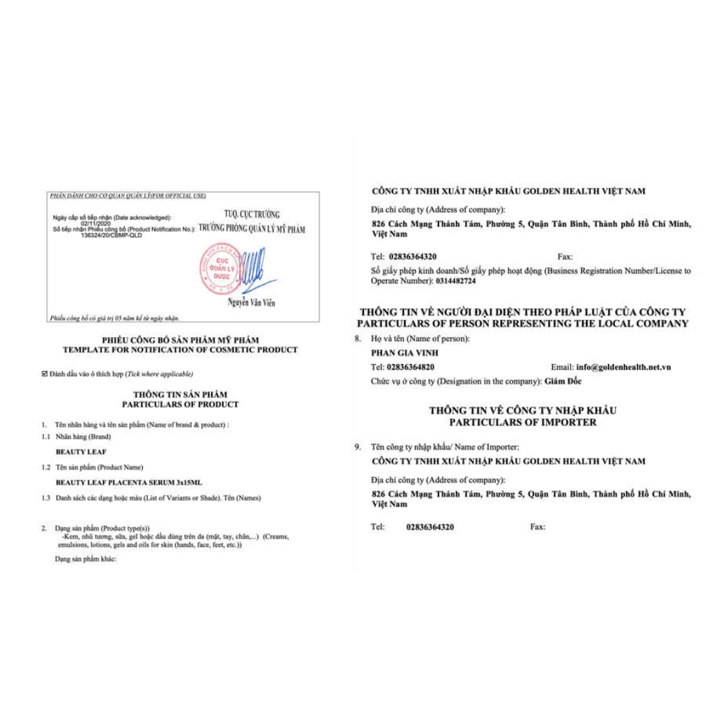 ✨Tinh Chất Serum Dưỡng Trắng Da Nhau Thai Cừu Giúp Làm Mờ Thâm,Nám,Tàn Nhang,Ngăn Ngừa Lão Hóa,Cung Cấp Vitamin Và Dưỡng Chất Nuôi Dưỡng Da Trắng Hồng Beauty Leaf 15ml - Nhập khẩu chính ngạch từ Úc