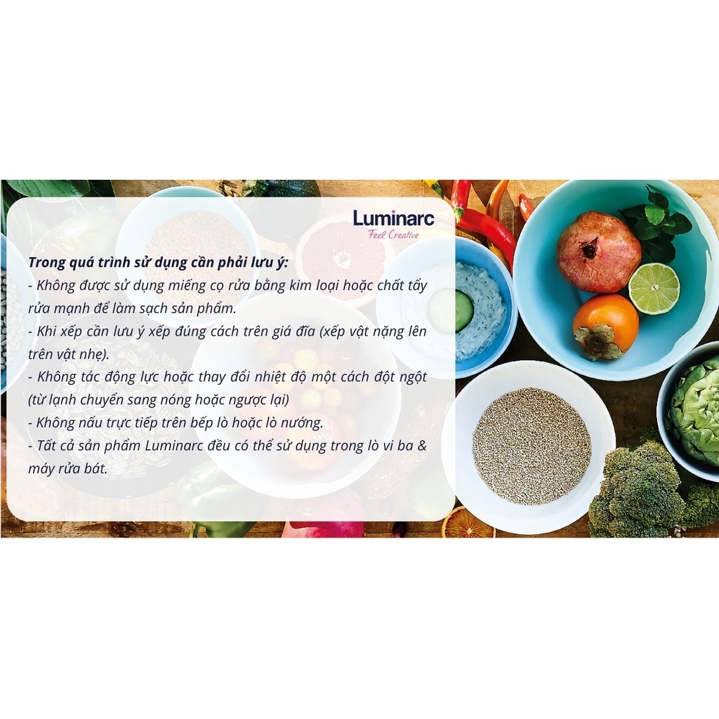 - Tất cả sản phẩm tô, chén, đĩa của Luminarc đều có thể sử dụng trong lò vi ba & máy rửa bát.