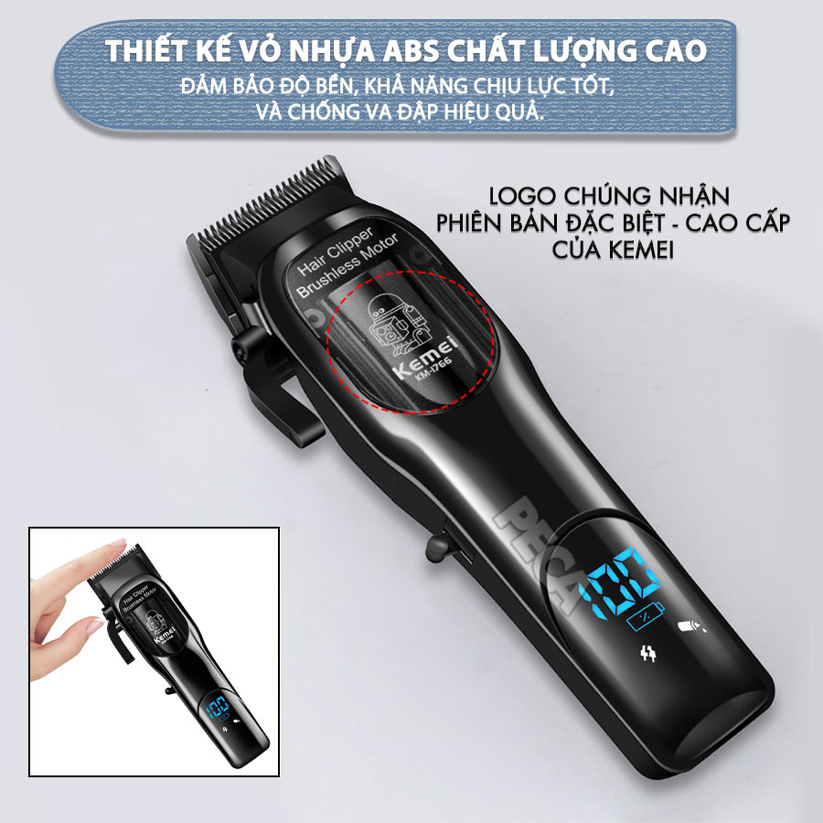 TÔNG ĐƠ CẮT TÓC CHUYÊN NGHIỆP KEMEI KM-1766 CÔNG SUẤT MẠNH 5W ĐỘNG CƠ KHÔNG CHỔI THAN, MÀN HÌNH LCD HIỂN THỊ SẠC, LƯỠI CẮT MẠ CARBON DLC CAO CẤP