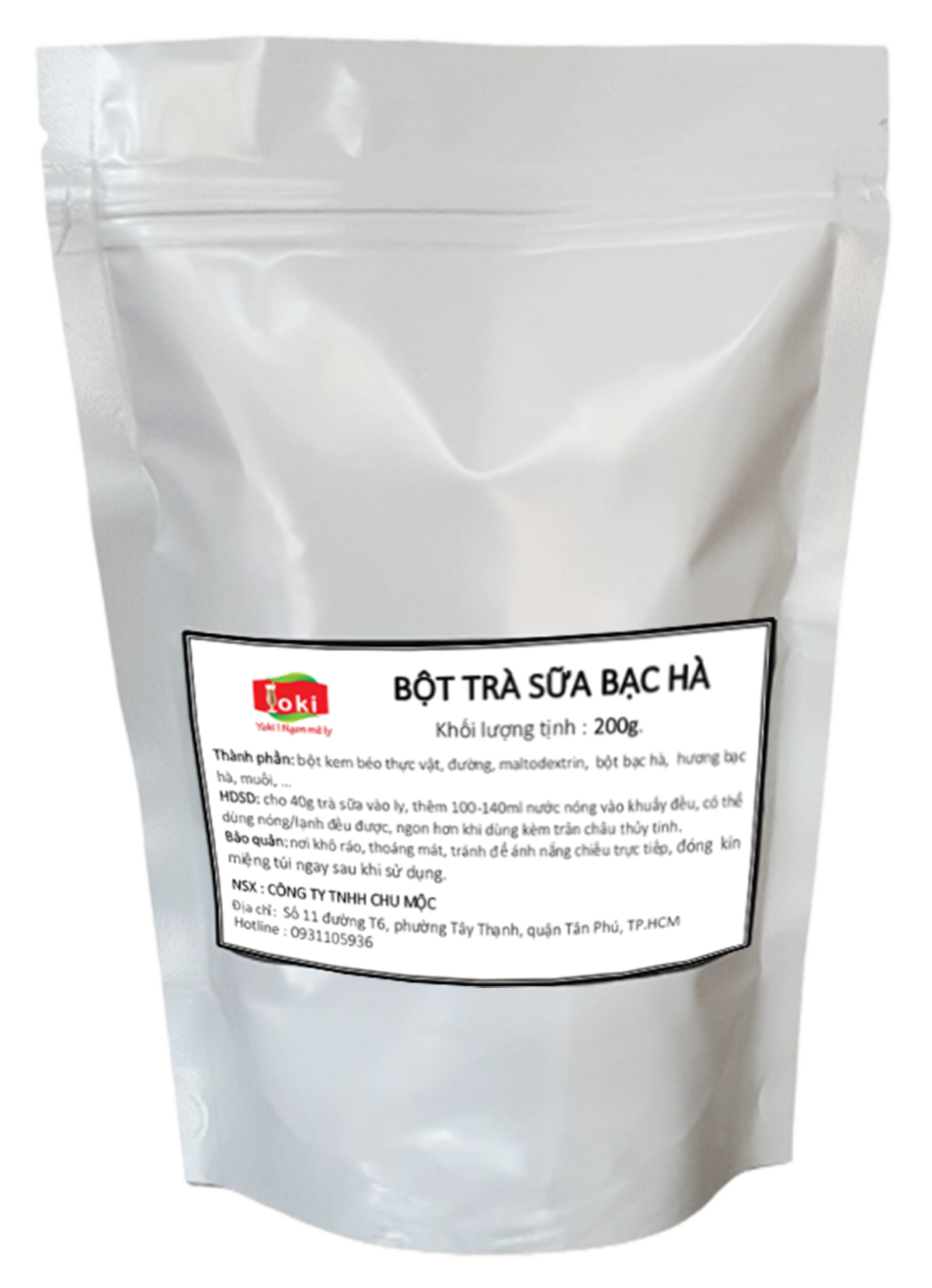- Trà sữa vừa có vị beo béo của sữa, vị thơm mát của bạc hà, được đóng thành gói 200g, 500g, 1kg . Giá thành tầm 10k/ly, sạch sẽ, chất lượng ngang tầm quán cao cấp . Đã có Yoki, không ngại CôVi. Không cần đi xa, không cần suy nghĩ nhiều, chỉ cần đặt hàng, còn lại hãy để Chu Mộc gánh vác tất cả nha mọi người. Thông tin chi tiết: Trà Sữa Bạc Hà Yoki 200g/500g/1kg