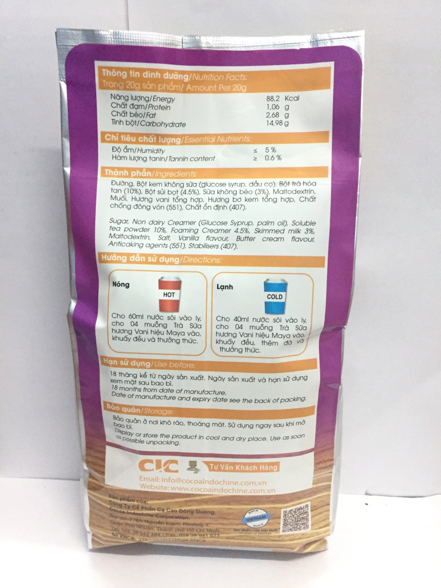 - Trà Sữa Maya Hương Vanilla Cocoa Indochine (Hộp 10 Sticks) được làm từ những lá trà tươi thiên nhiên qua quá trình chế biến kỹ lưỡng, cho bạn tách trà sữa hương Vani thơm ngon,