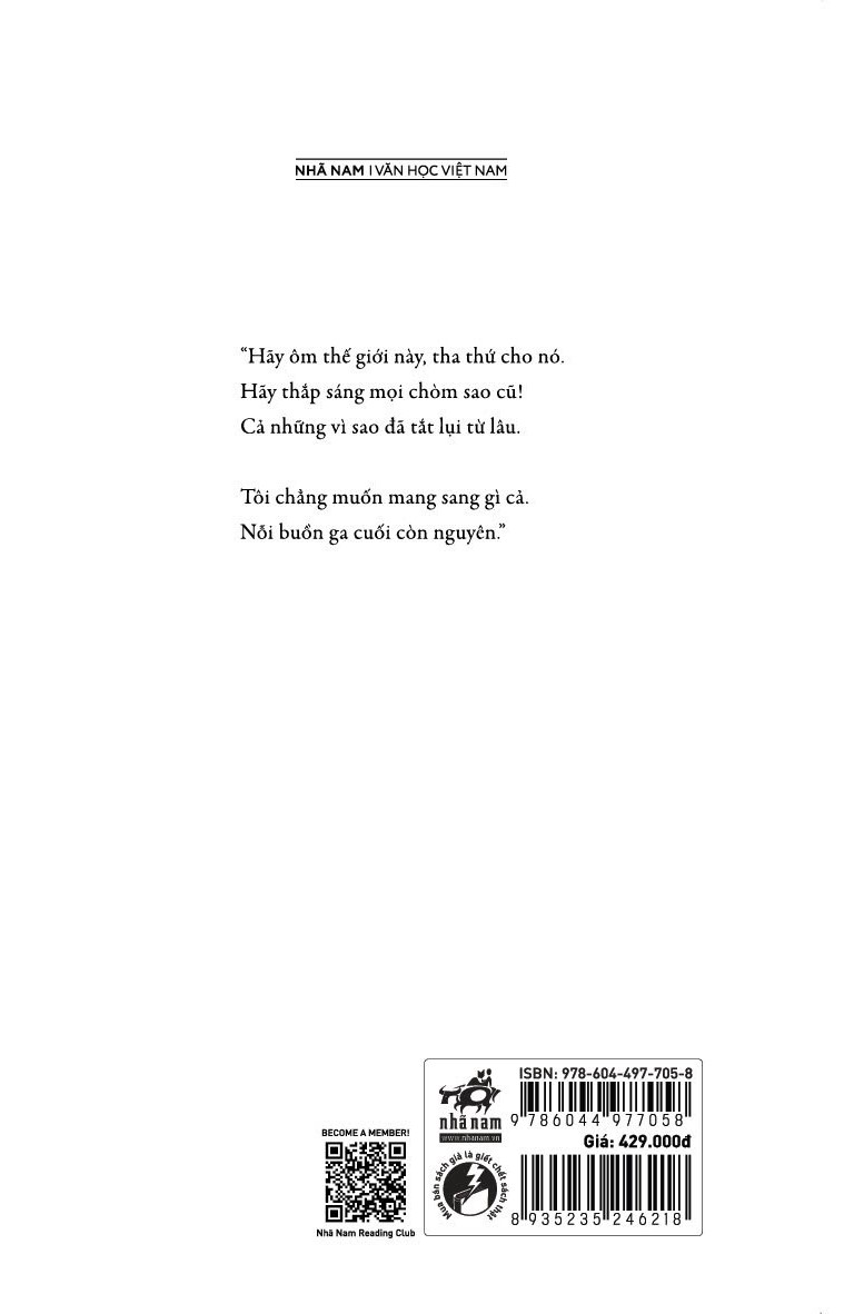THÔNG TIN XUẤT BẢN: - Công ty phát hành: Nhã Nam - Tác giả: Trần Lê Khánh - Nhà xuất bản: Hội Nhà Văn - Kích thước: 25 x 17 x 1.5 cm - Năm