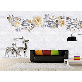 ✨Tranh dán tường 3d,TRANH HOA 3D DÁN TƯỜNG CAO CẤP, Tranh hoa 3D, tranh lụa 3D dán tường,tranh dán tường phòng khách 3D PVP-TS035