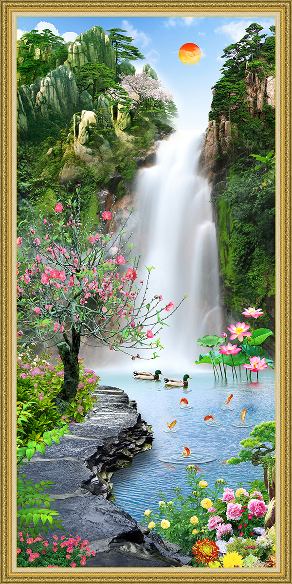 Tranh 3D dán tường phòng khách, Tranh thác nước đẹp