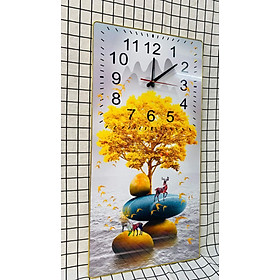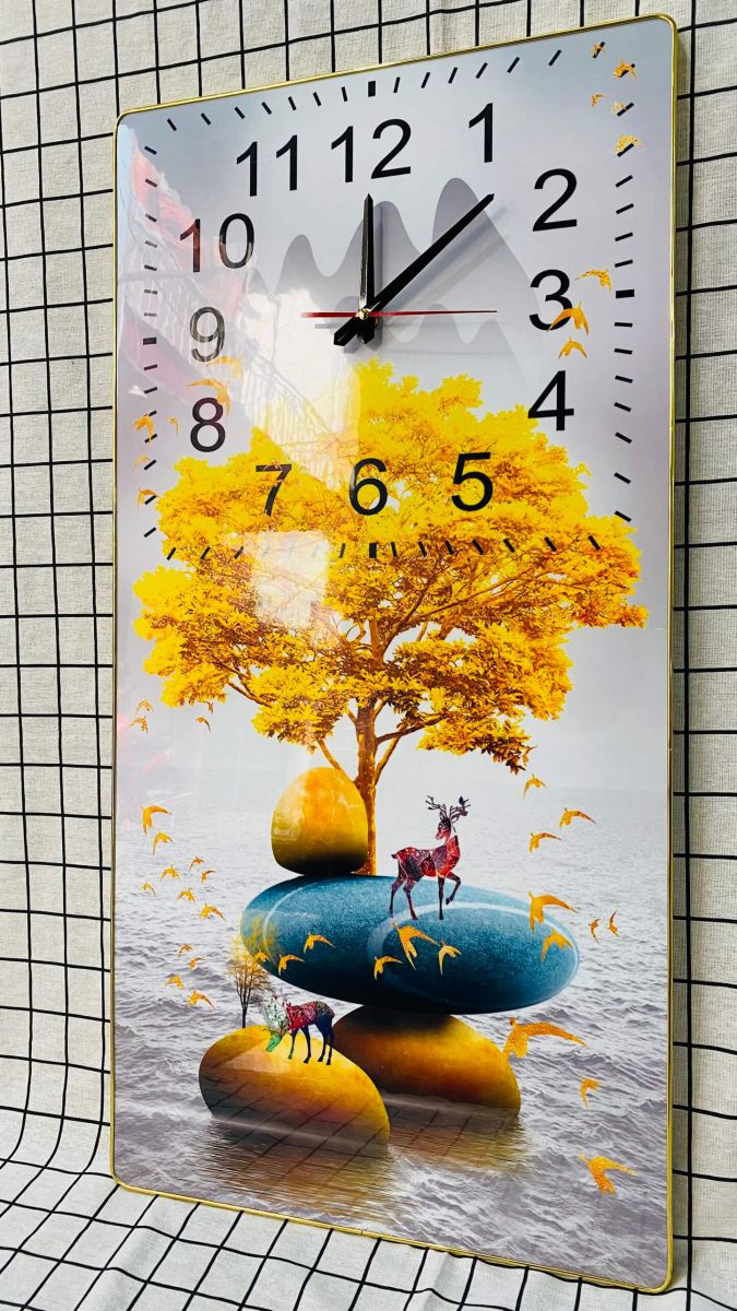 Tranh đồng hồ hươu vàng tài lộc - Kích thước của tranh : 35x70cm - 45x90cm -55x110cm-60x120cm - Khác h hàng muốn thay đổi sản phẩm tùy ý như: kích thước, màu sắc kim đồng
