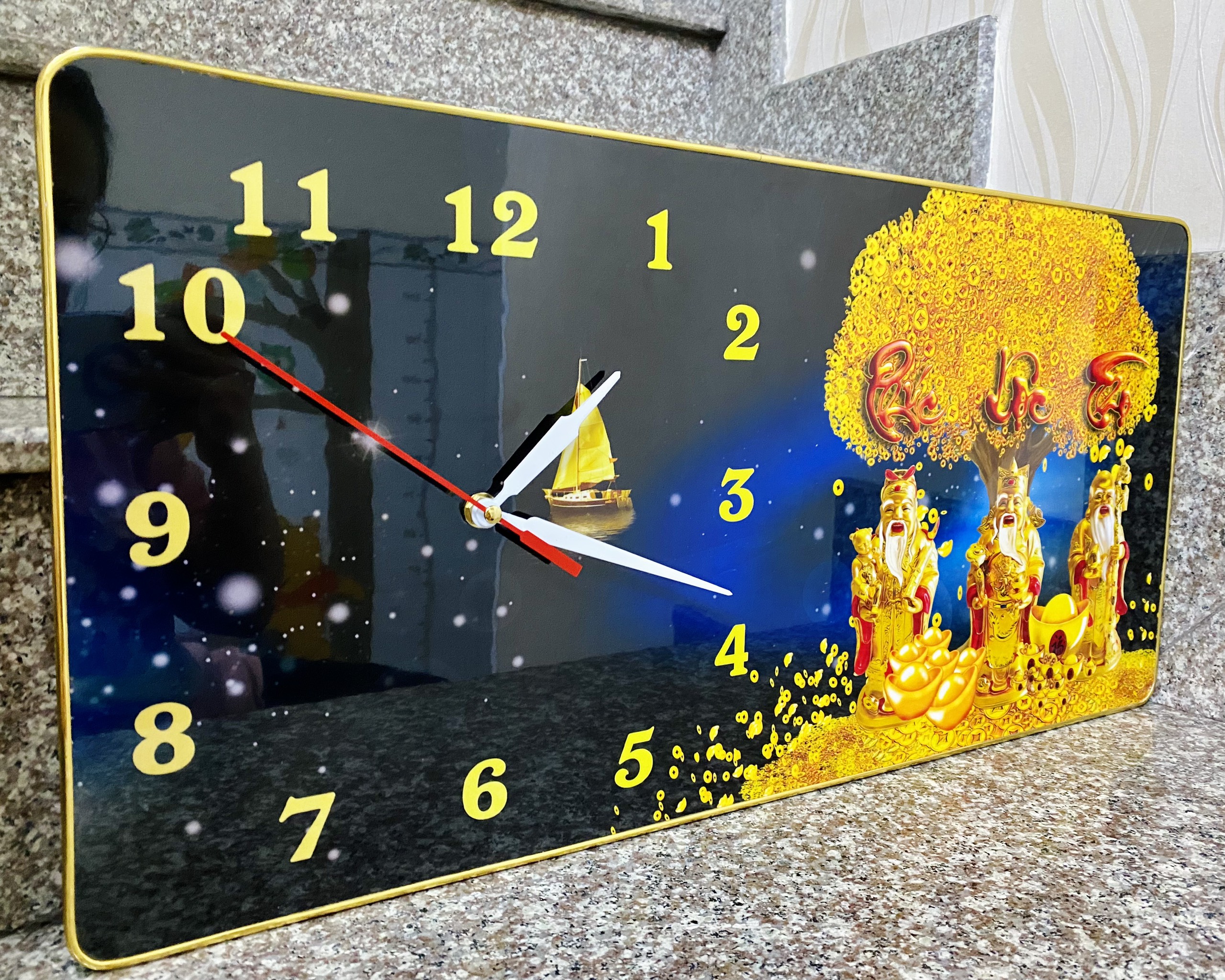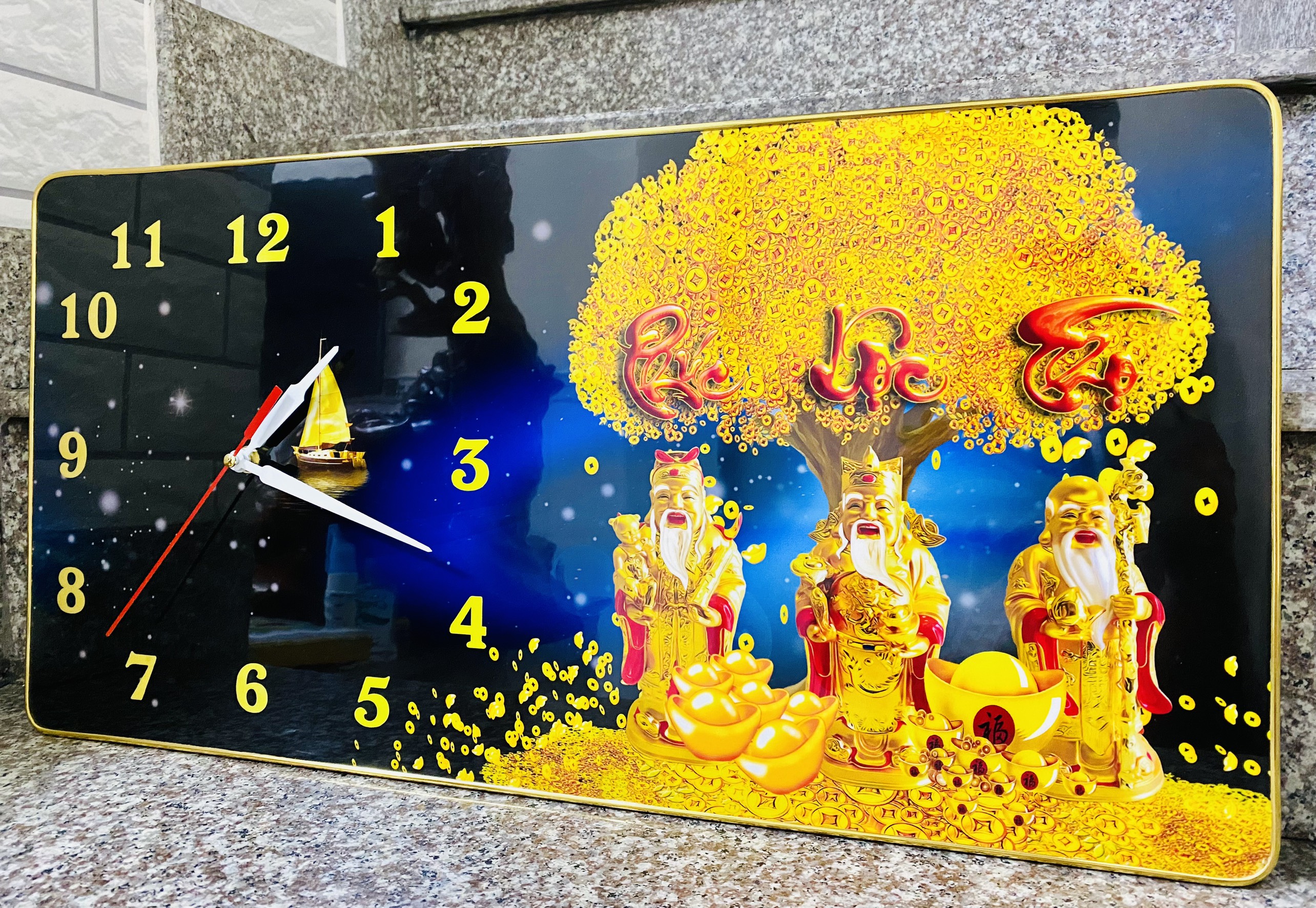 Đồng hồ quả lắc treo tường in hình Phúc Lộc Thọ và cây Kim Tiền #donghoqualac #decor #trangtritet