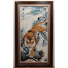 Mua tại TiktokTranh thảm dệt – Hổ xuống núi- Hổ hạ sơn Chất liệu: Thảm dệt. Khung tranh composte bền đẹp, mặt tranh lồng kính hoặc meca kích thước phủ khung 79*138cm