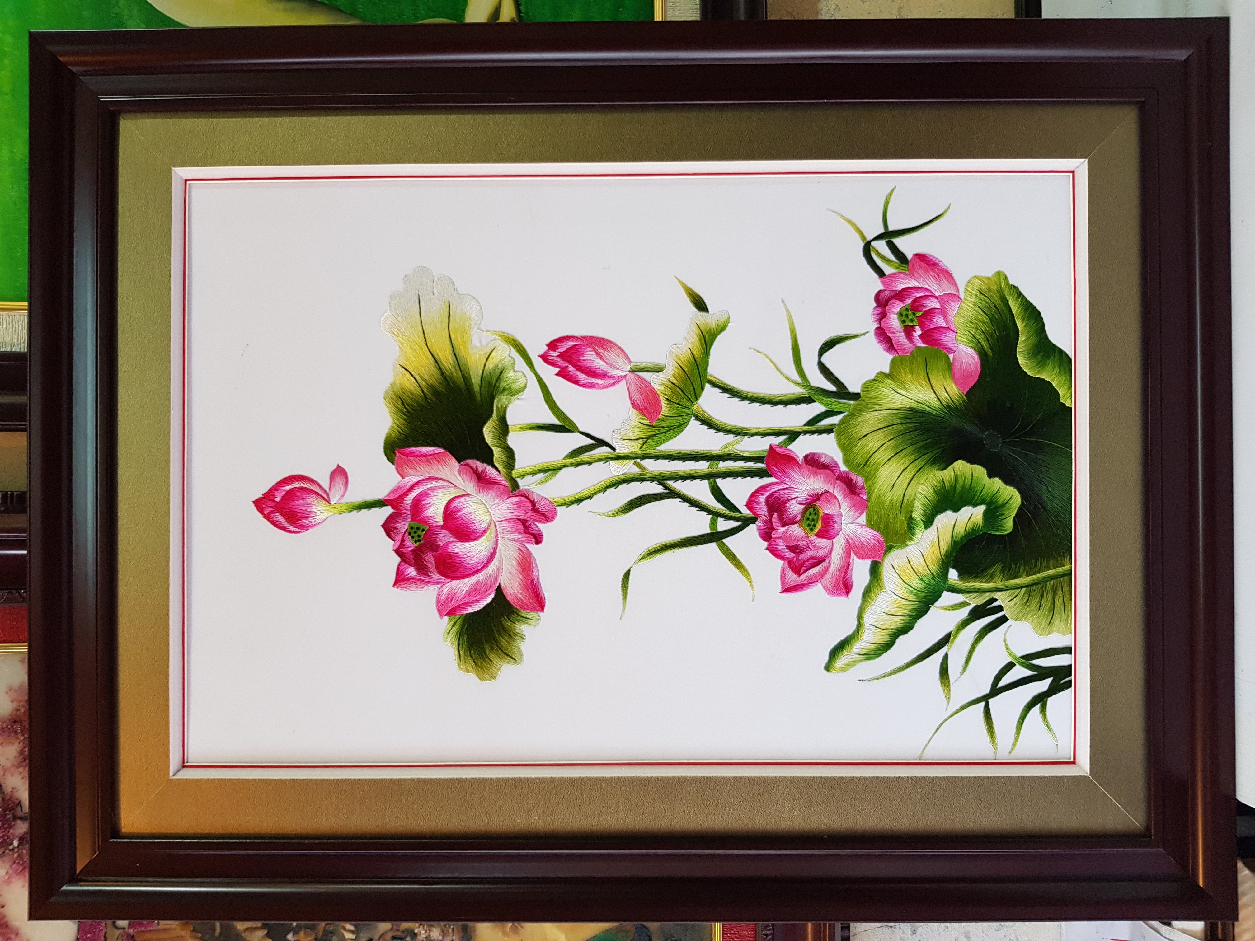 ✨TRANH THÊU TAY TINH XẢO CHỈ TƠ BÓNG -HOA SEN