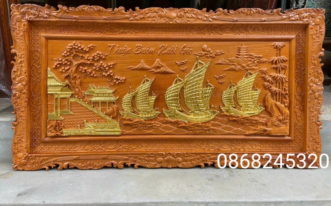 ✨Tranh thuận buồm xuôi gió bằng gỗ gõ pu dát vàng cao cấp kt 67×127×4cm