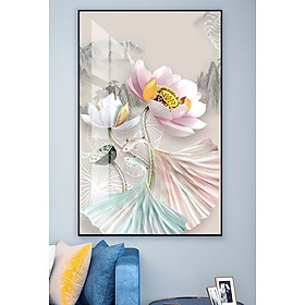 ✨Tranh treo tường phòng khách - khách sạn - nhà hàng bóng kiếng pha le hoa sen hồng THD98